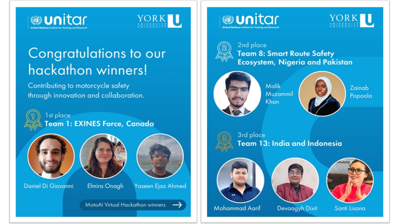 UNITAR congratulates all participants for bringing creativity, commitment and expertise to this important mission. Their ideas will help further scale and strengthen the MotoAl assessment, advancing motorcycle safety globally.